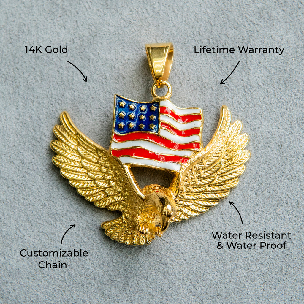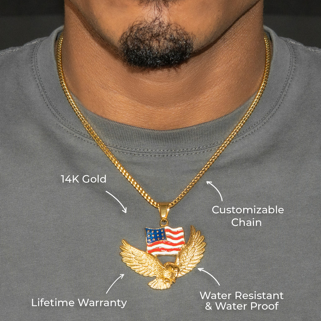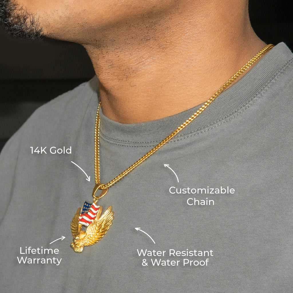 Mens Jewelry - 14K Gold American Eagle Necklace | Appx. 20 Grams