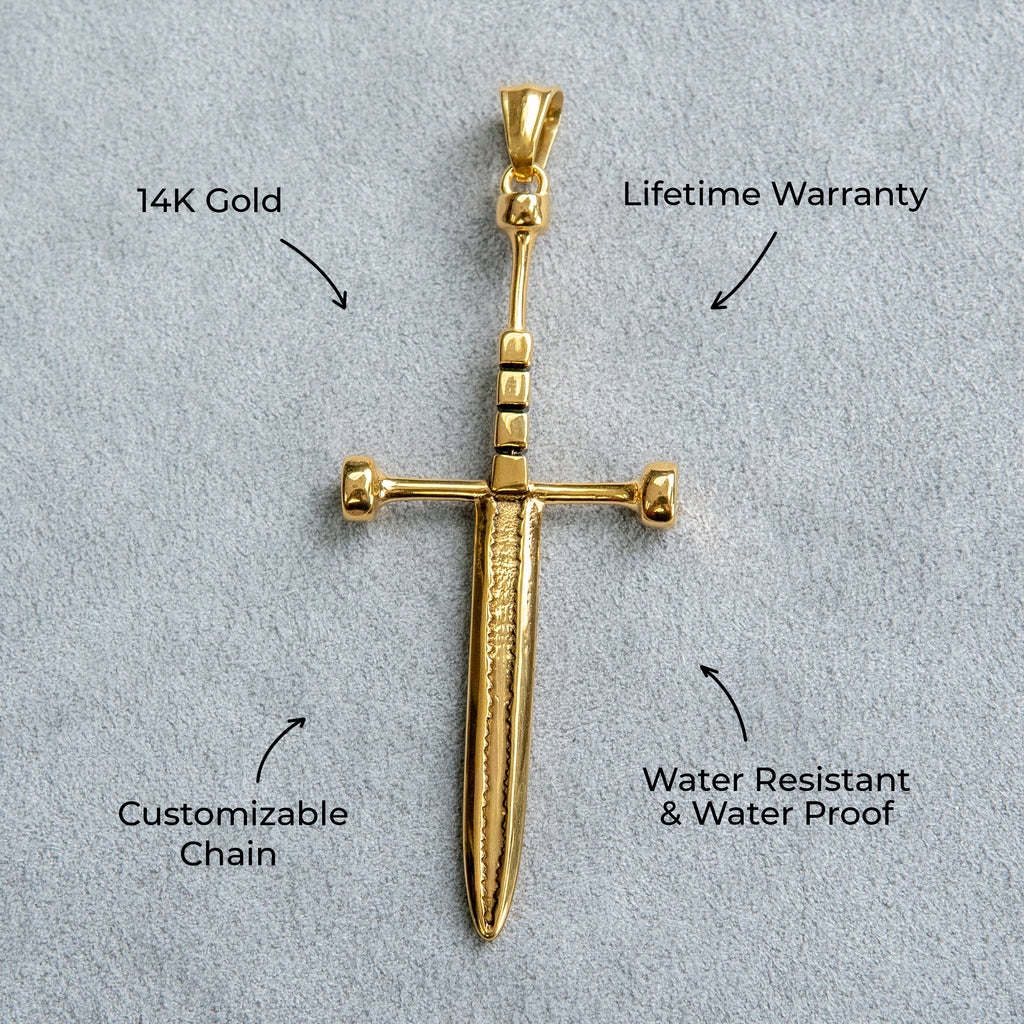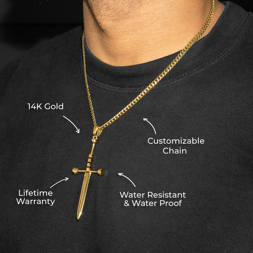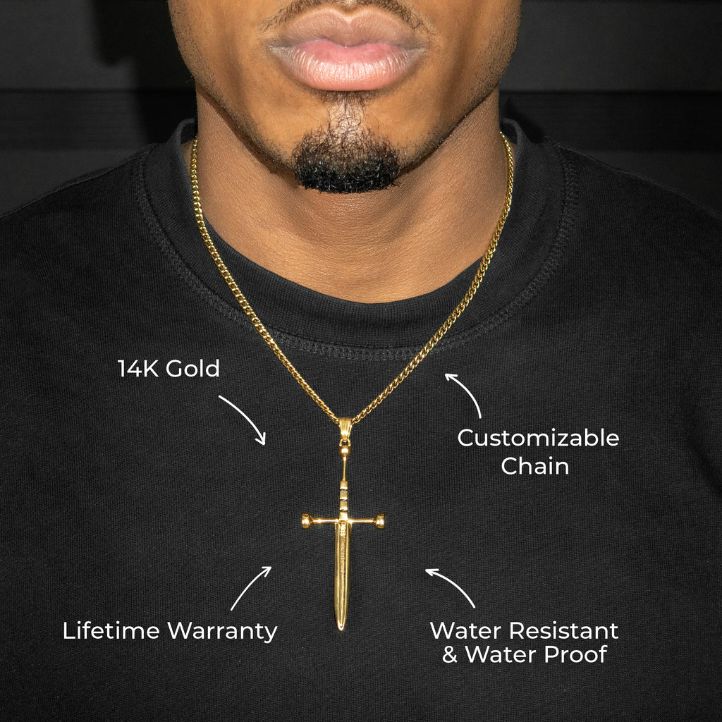 Mens Jewelry - 14K Gold Sword Necklace | Appx. 7.2 Grams