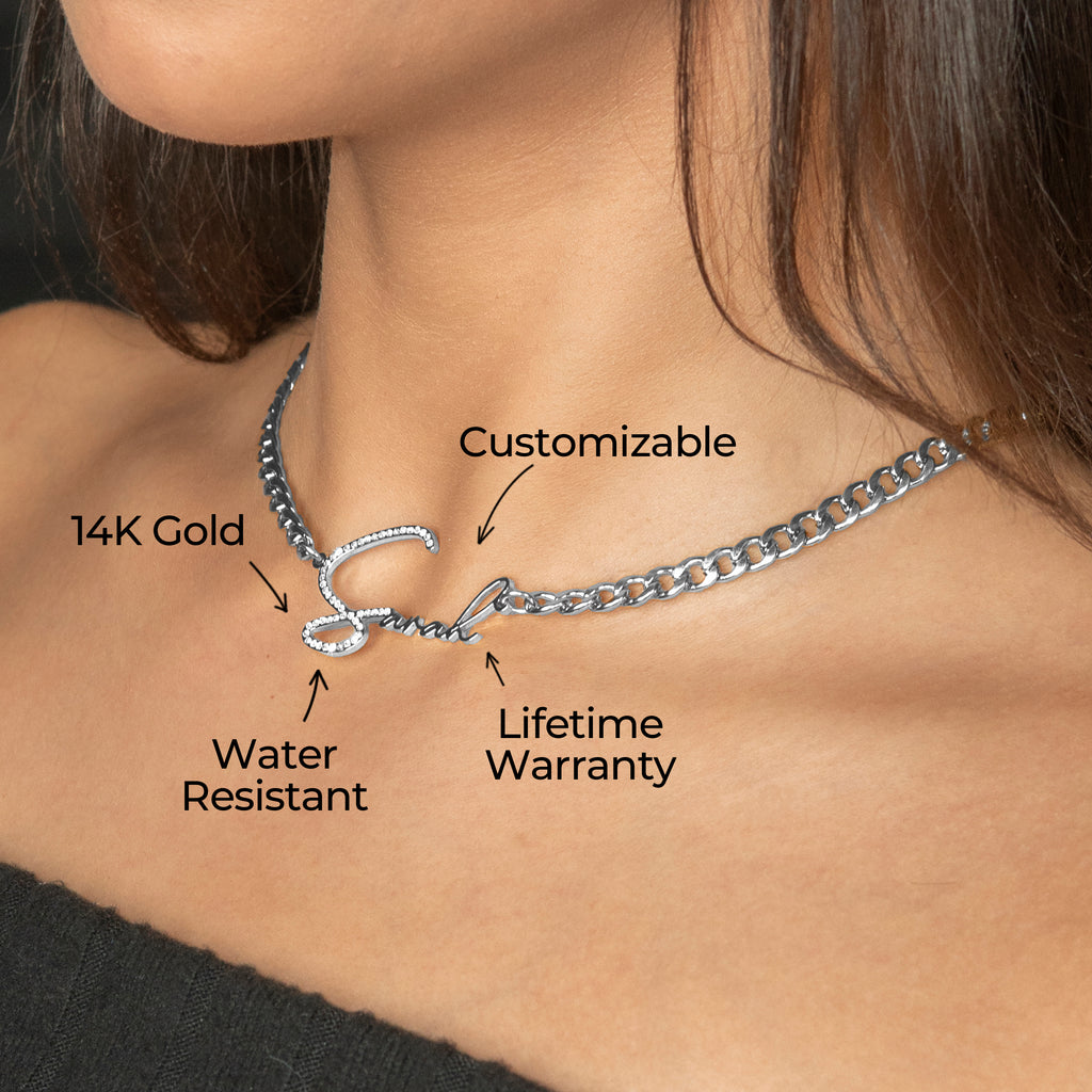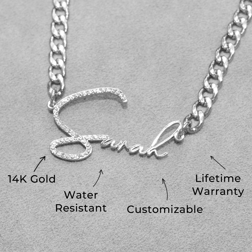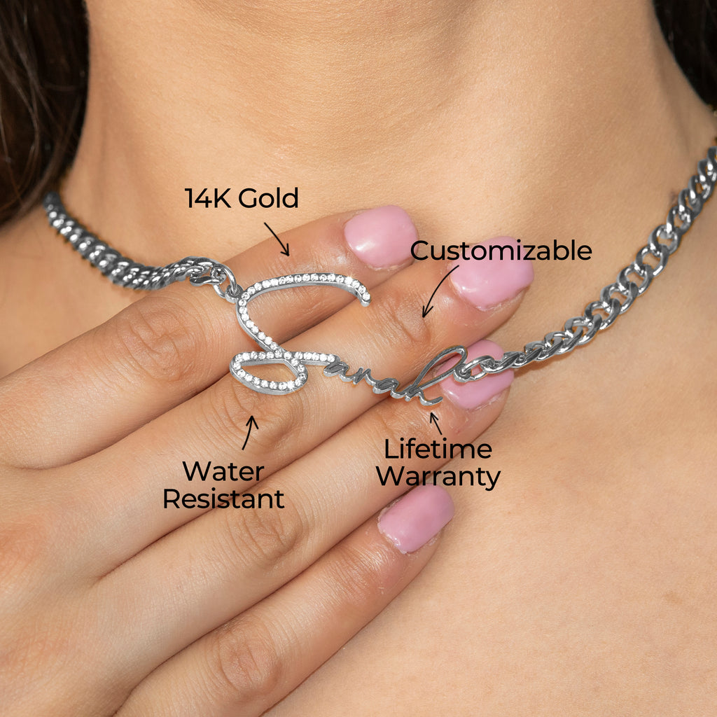 Women Jewelry - White Gold Iced Out VVS Name Necklace | Style # N45