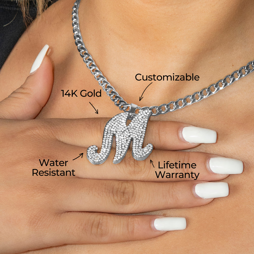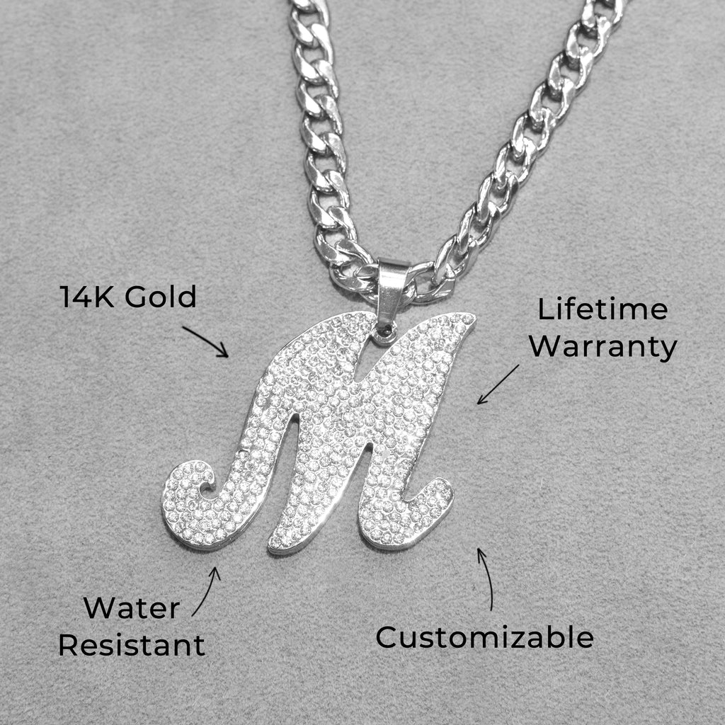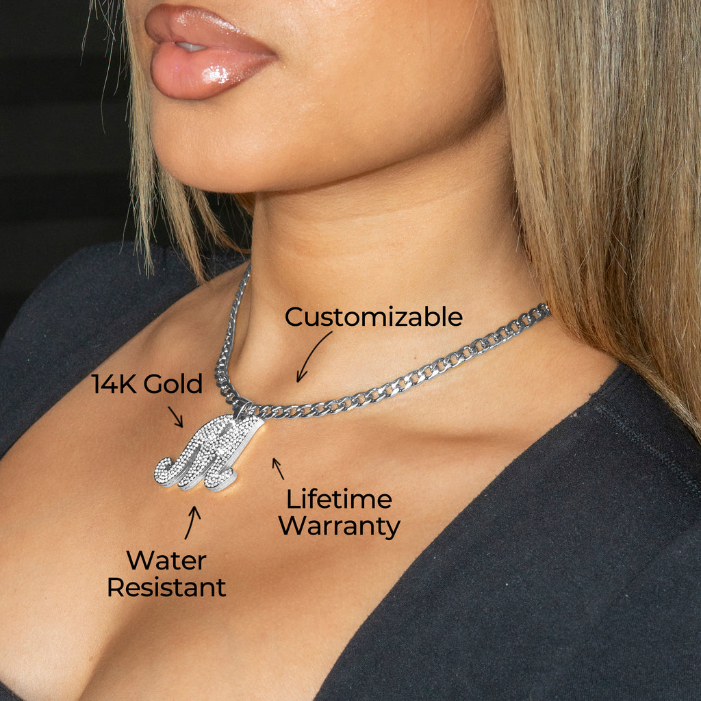 Women Jewelry - White Gold Initial Iced Out VVS Necklace | Style # 48