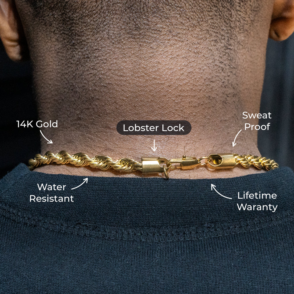 Gold Jewelry - Mens 14K Gold Chain Solid Rope