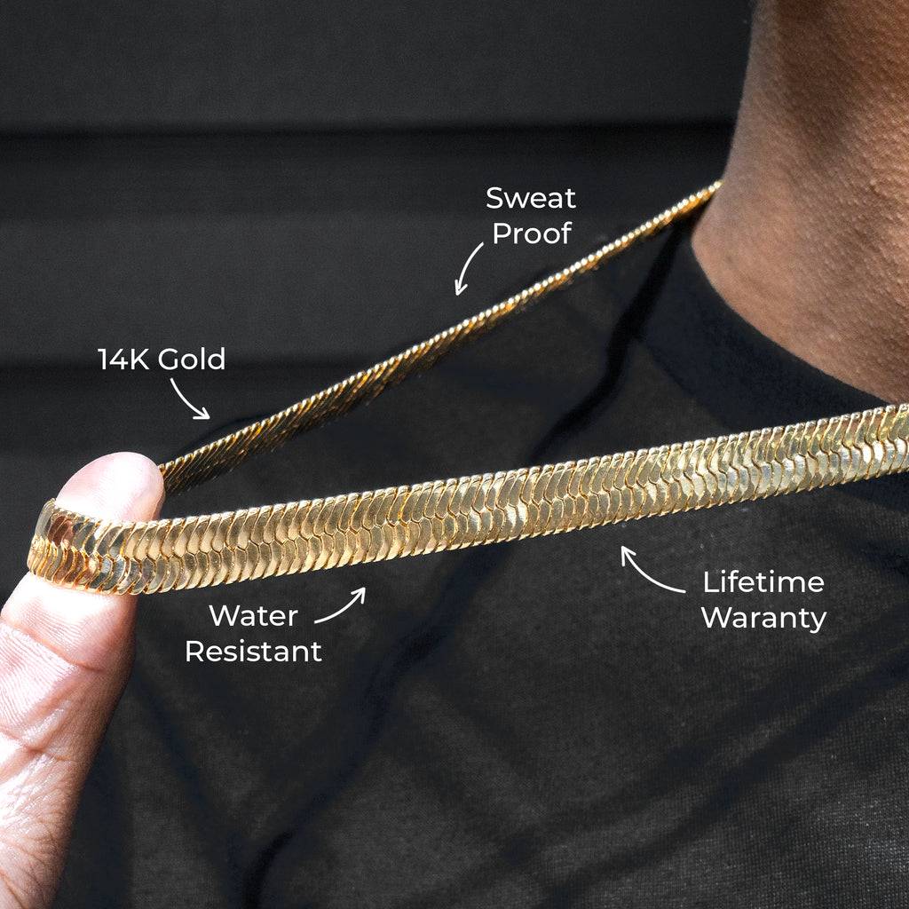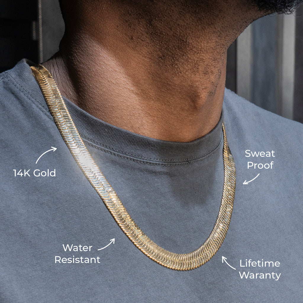 Gold Jewelry - Mens 14K Gold Herringbone Link Chain