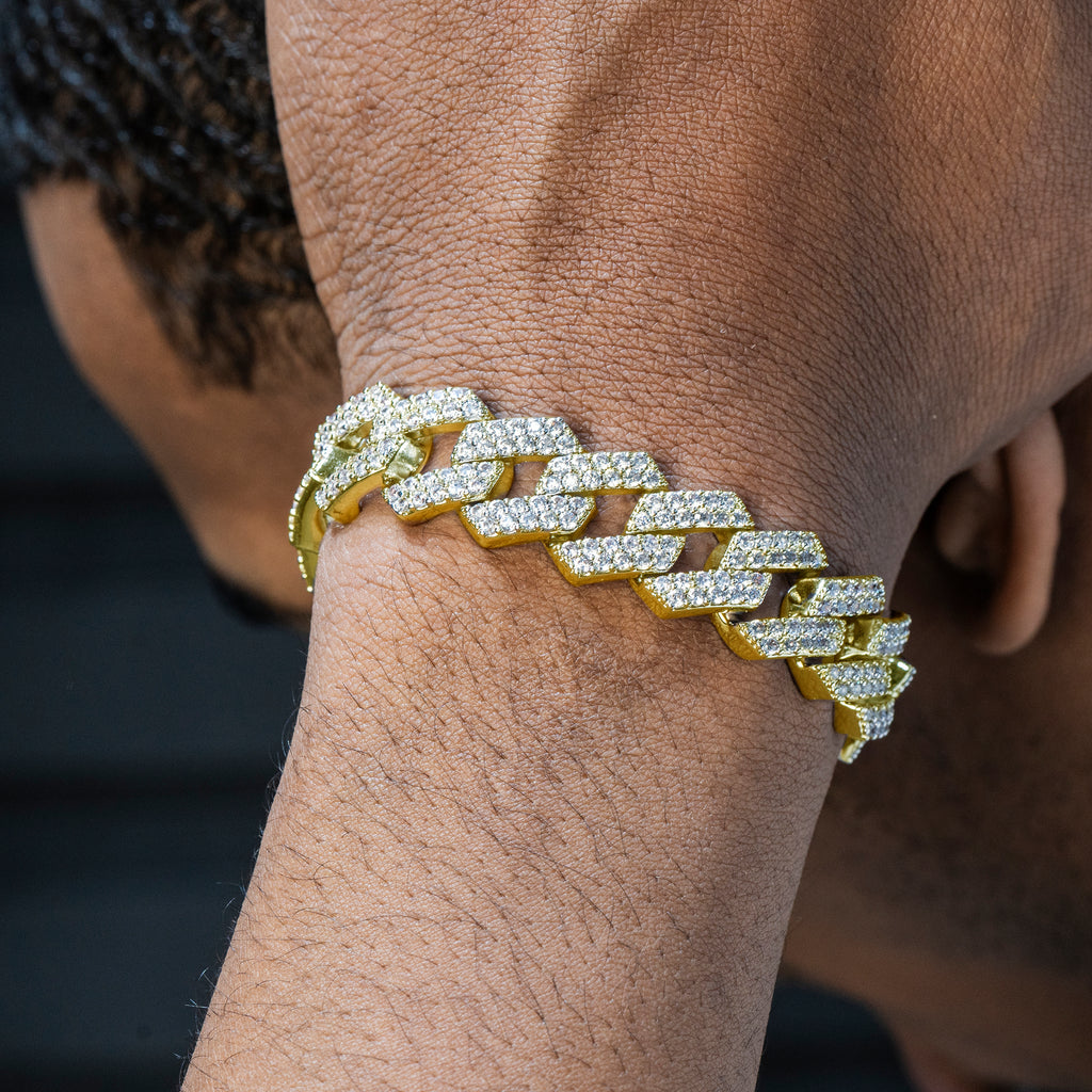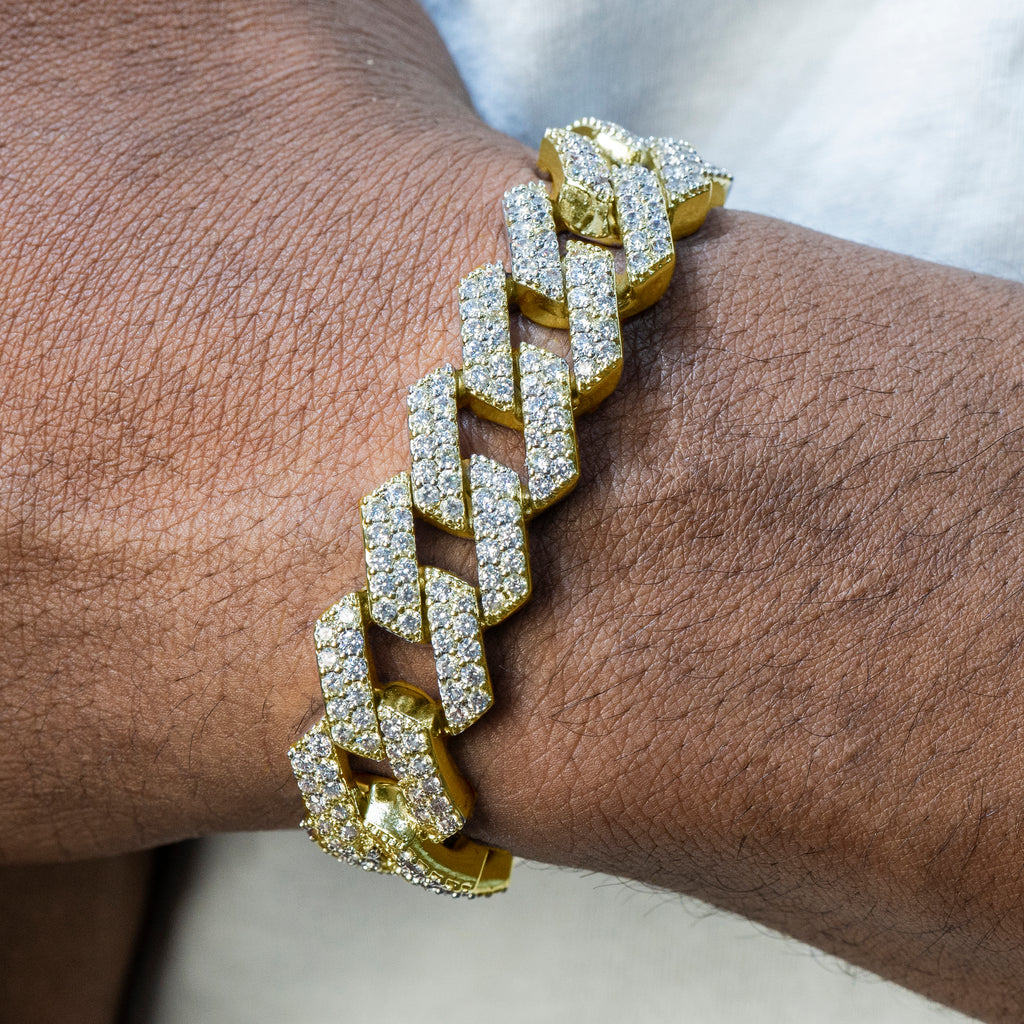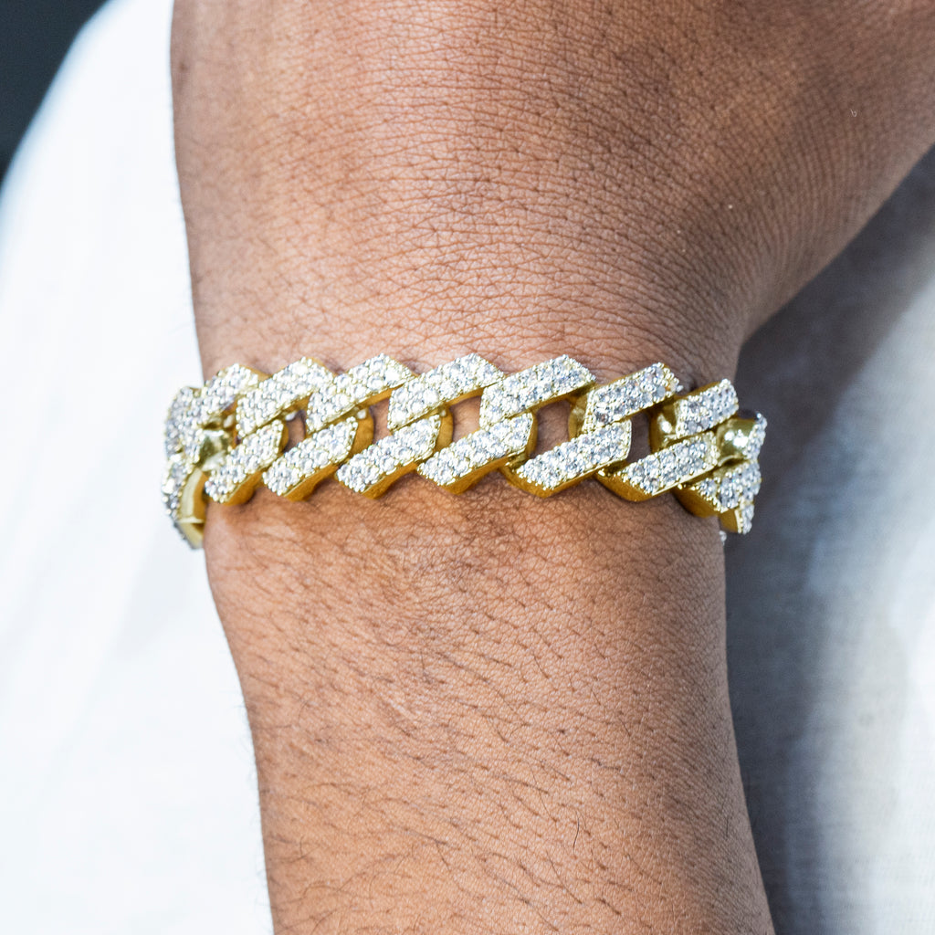 Gold Jewelry - Mens 14K Yellow Gold Iced Out VVS Miami Cuban Link Bracelet