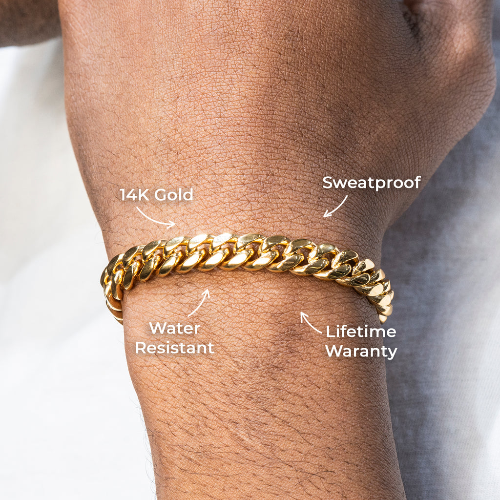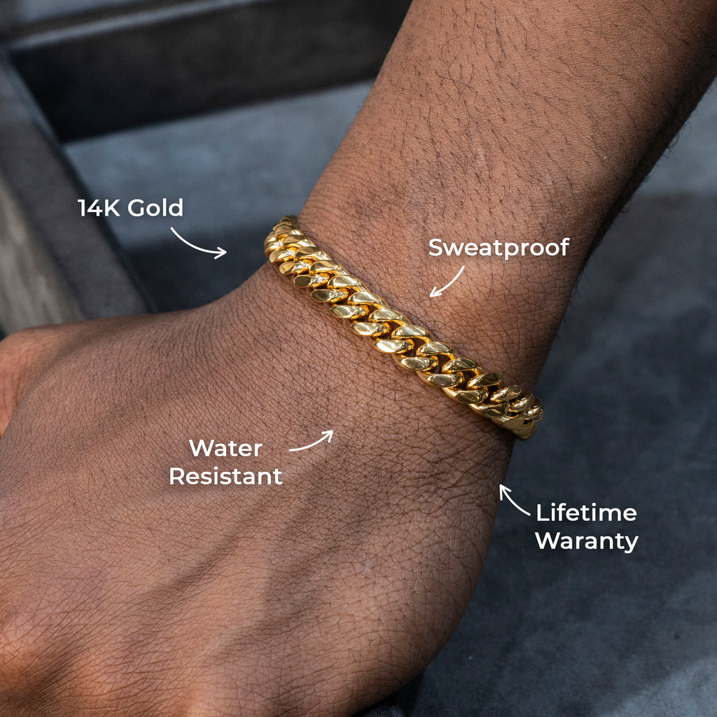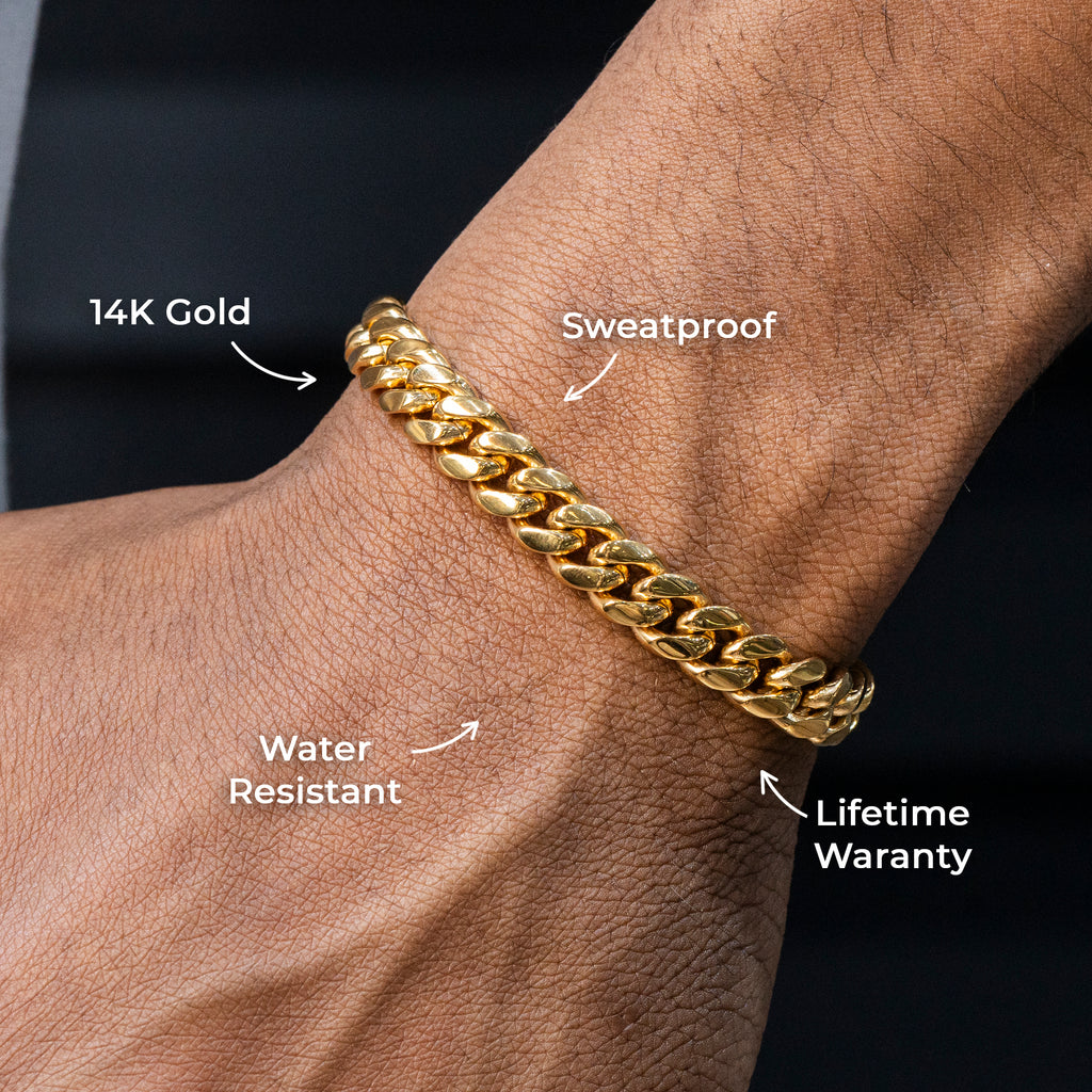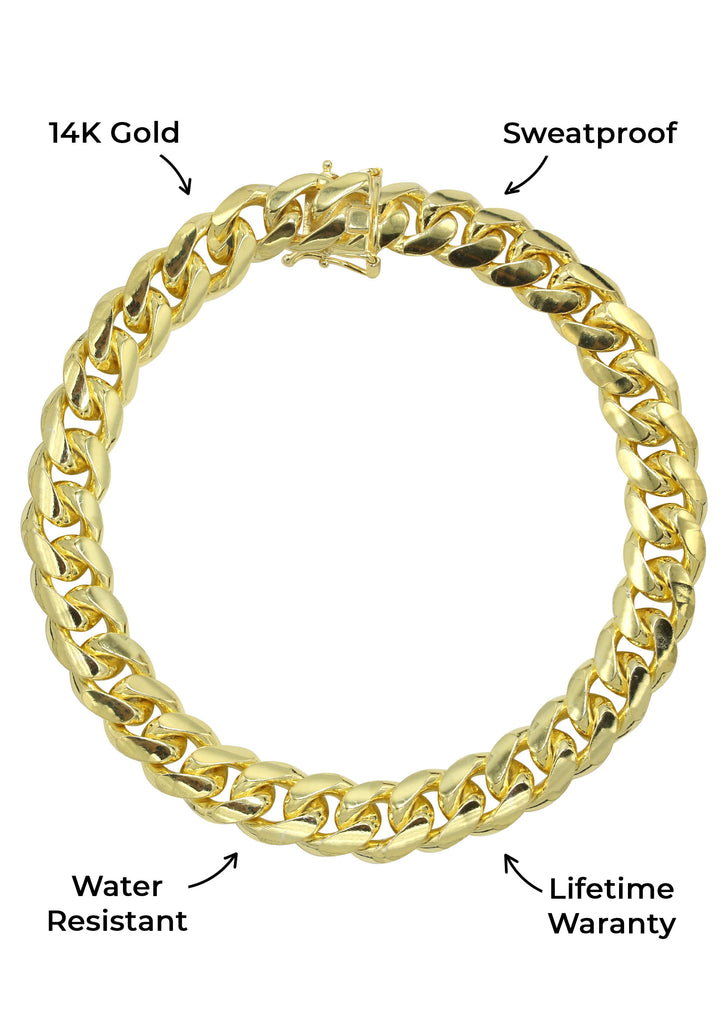 Gold Jewelry - Mens 14K Gold Solid Miami Cuban Link Bracelet