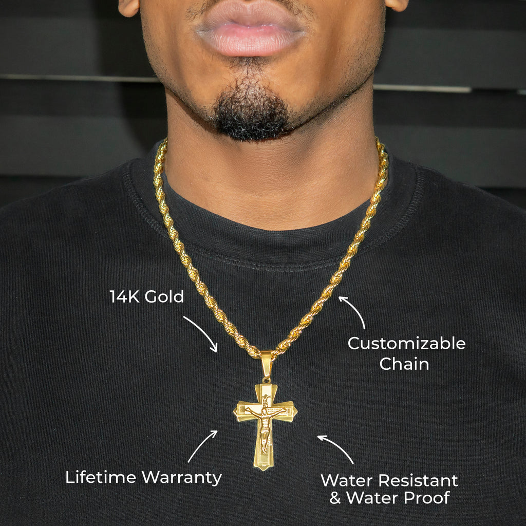 Mens Jewelry - 14K Gold Crucifix Necklace | Appx. 12 Grams
