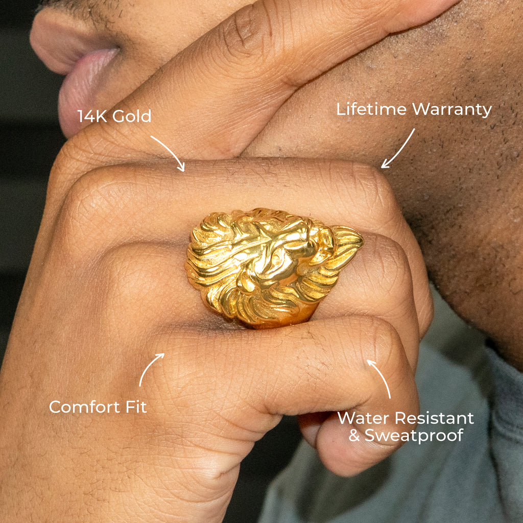 Mens Jewelry - Lion Head Gold Pinky Ring | 30 Grams