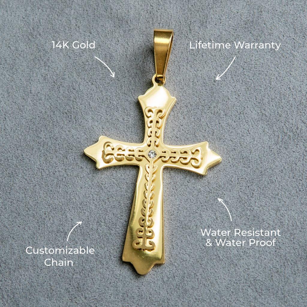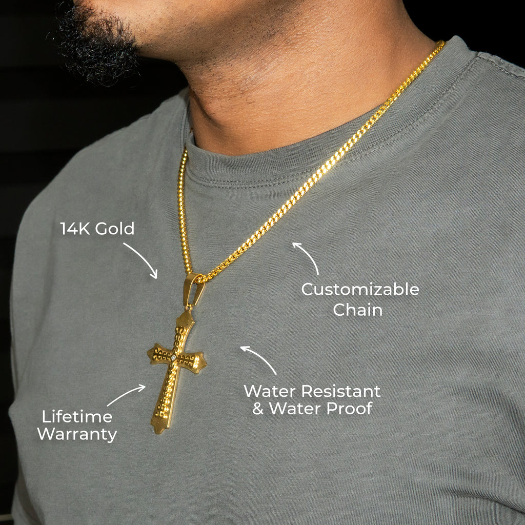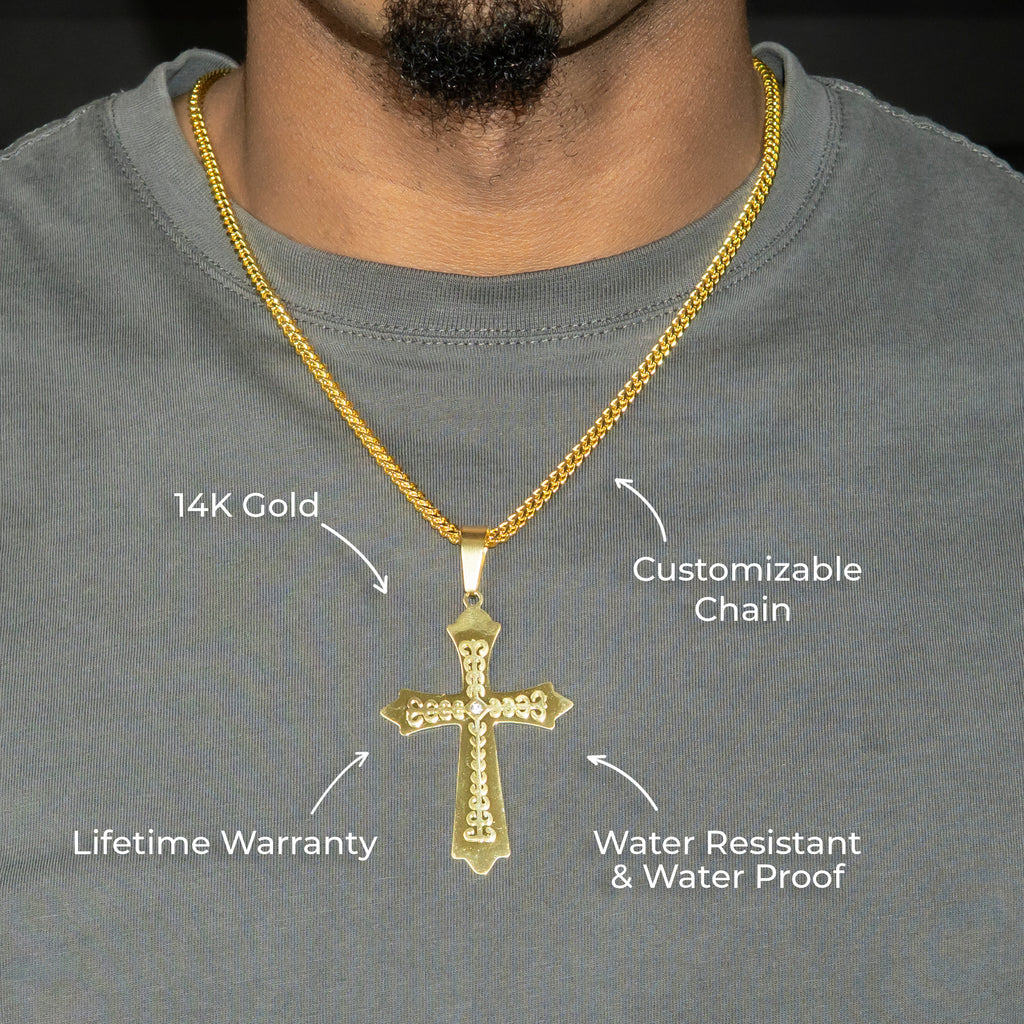 Mens Jewelry - 14K Gold Cross Necklace | Appx. 11 Grams