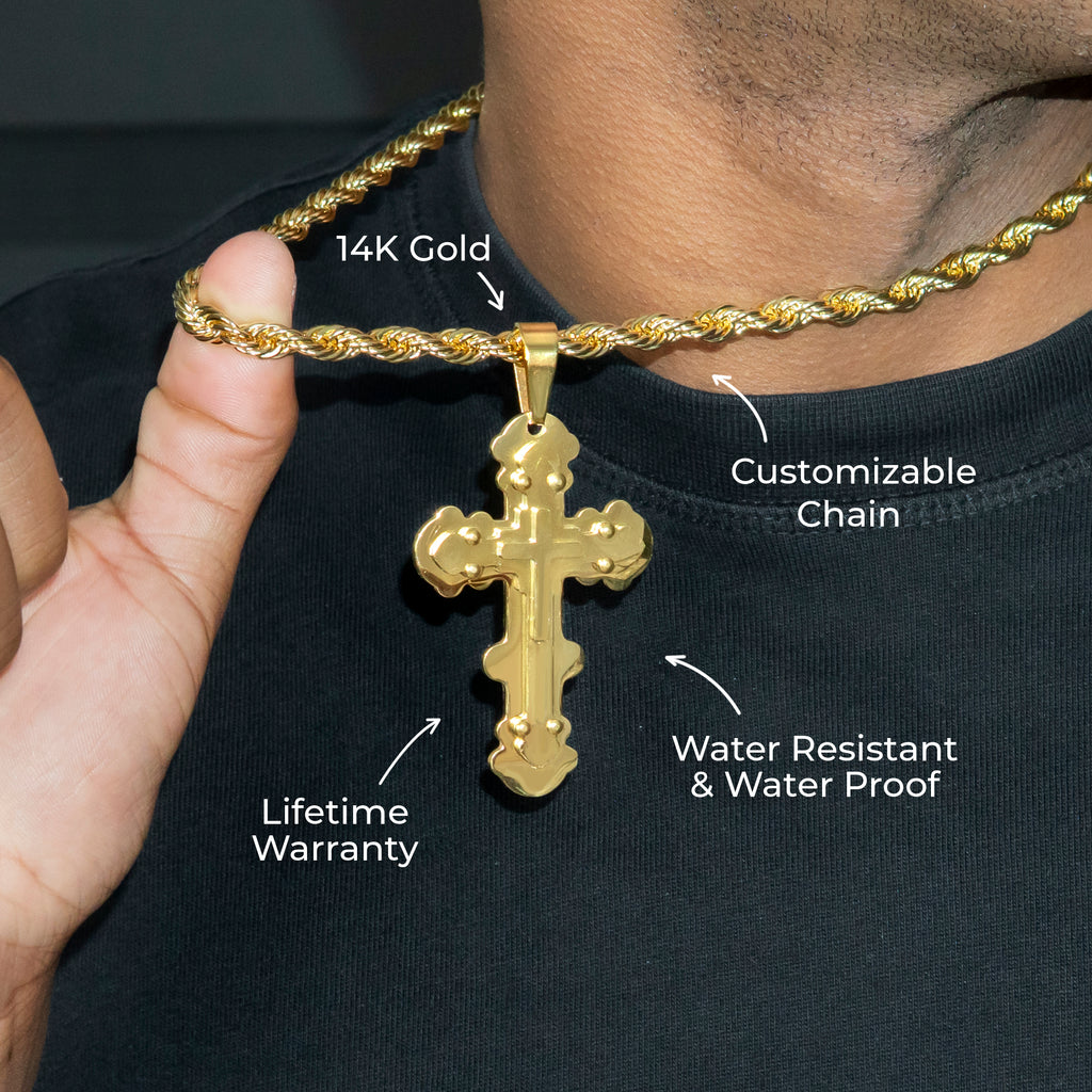 Mens Jewelry - 14K Gold Cross Necklace | Appx. 20 Grams