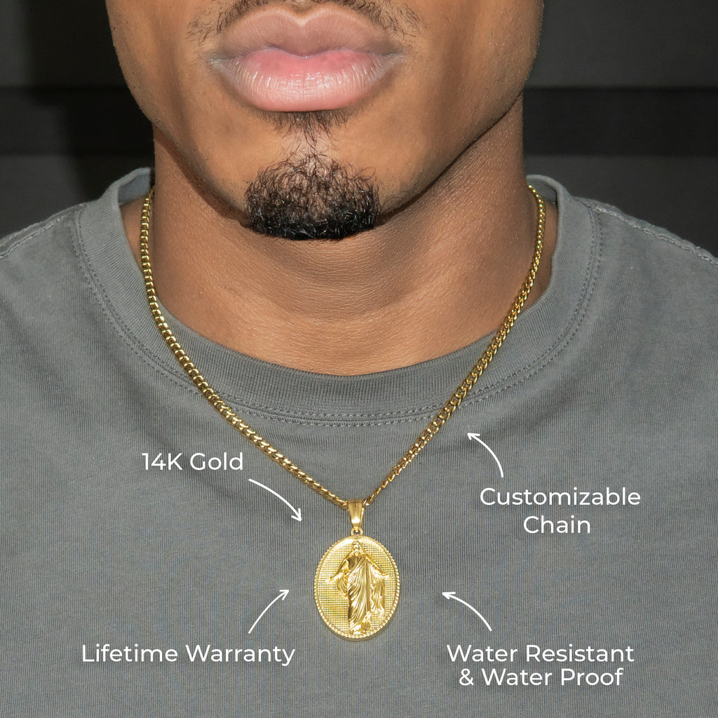 Mens Jewelry - 14K Gold Jesus Necklace | Appx. 11 Grams