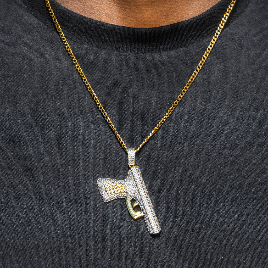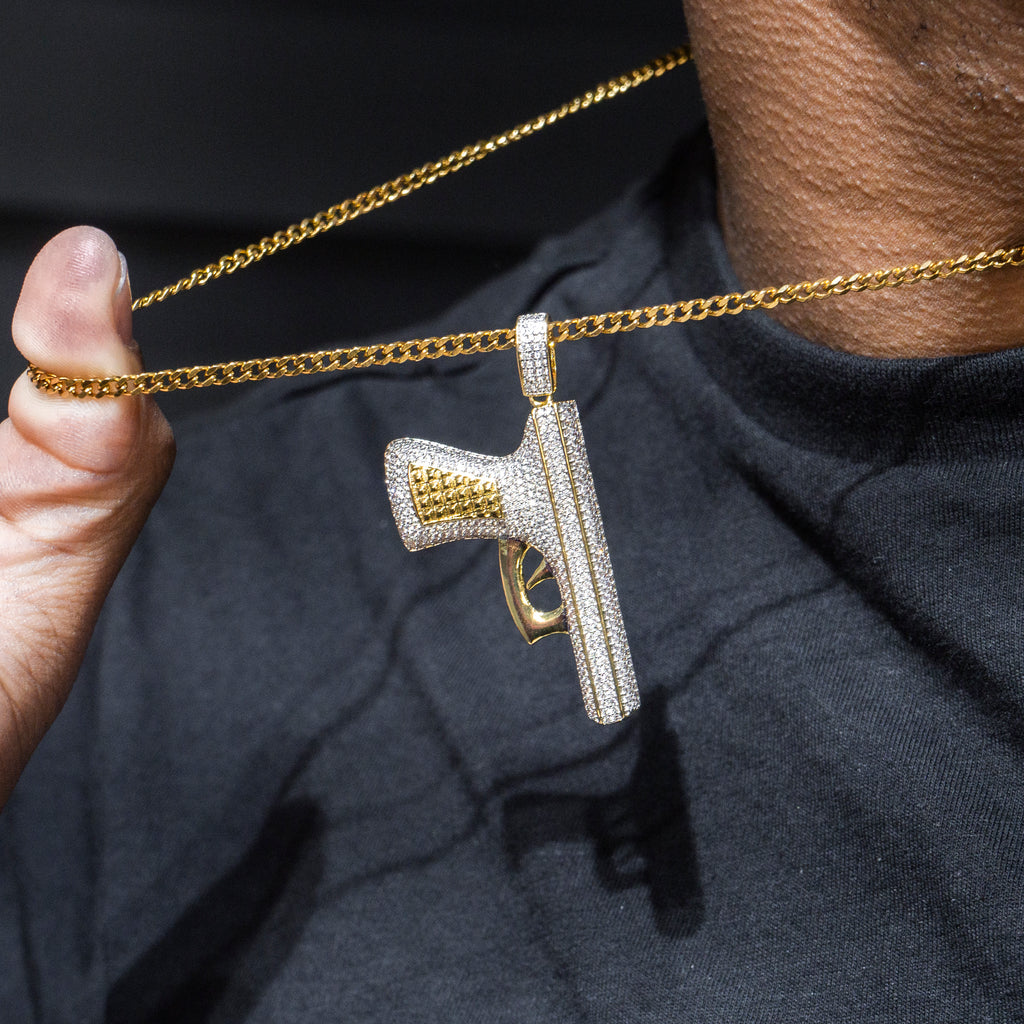 Mens Jewelry - Gold Iced Out VVS Gun Pendant | 8.2 Grams