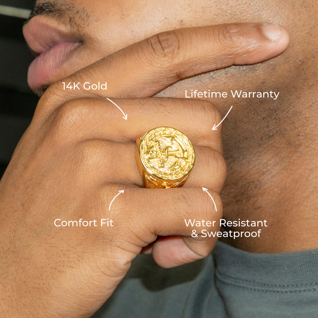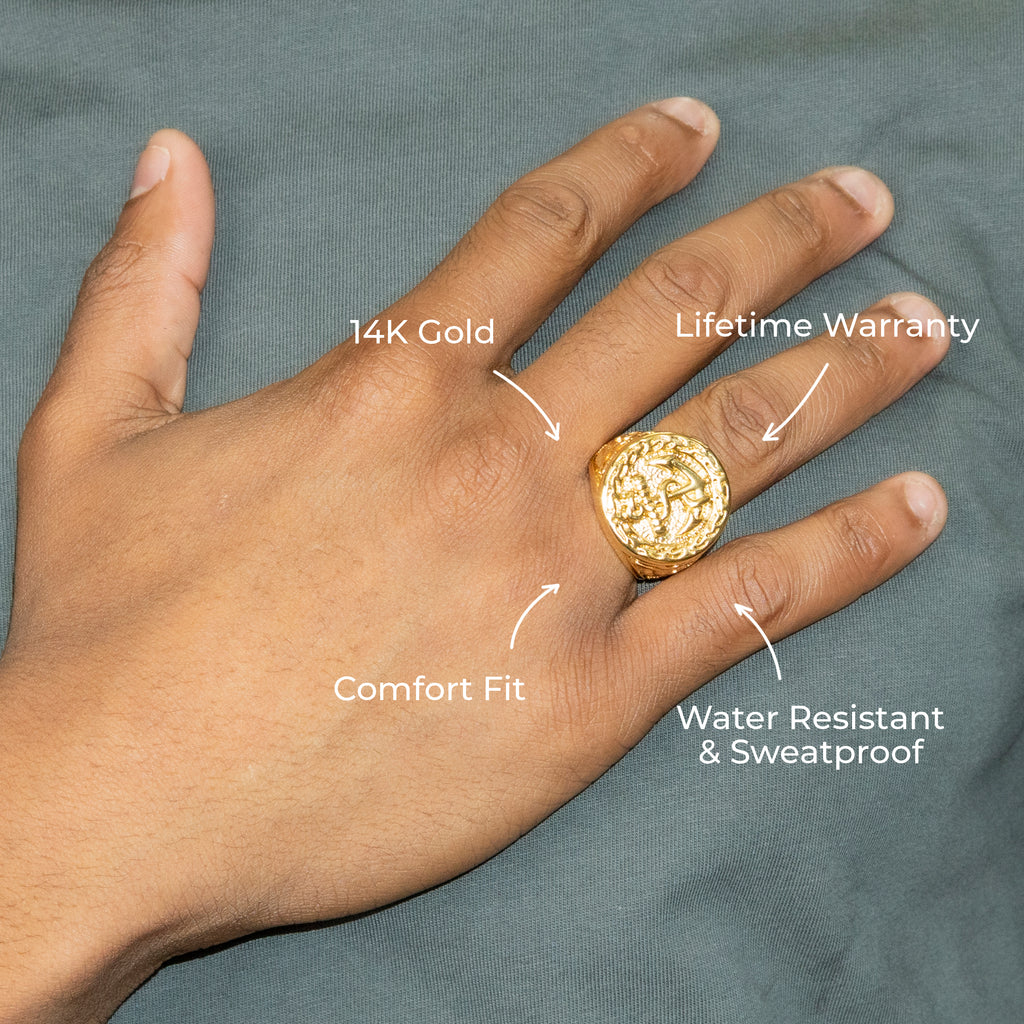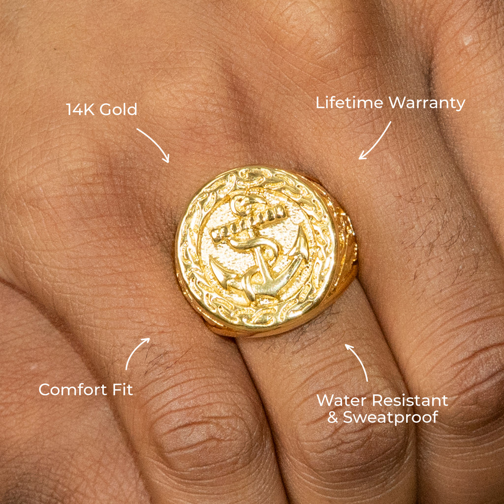 Mens Jewelry - Round Anchor Gold Pinky Ring | 20 Grams