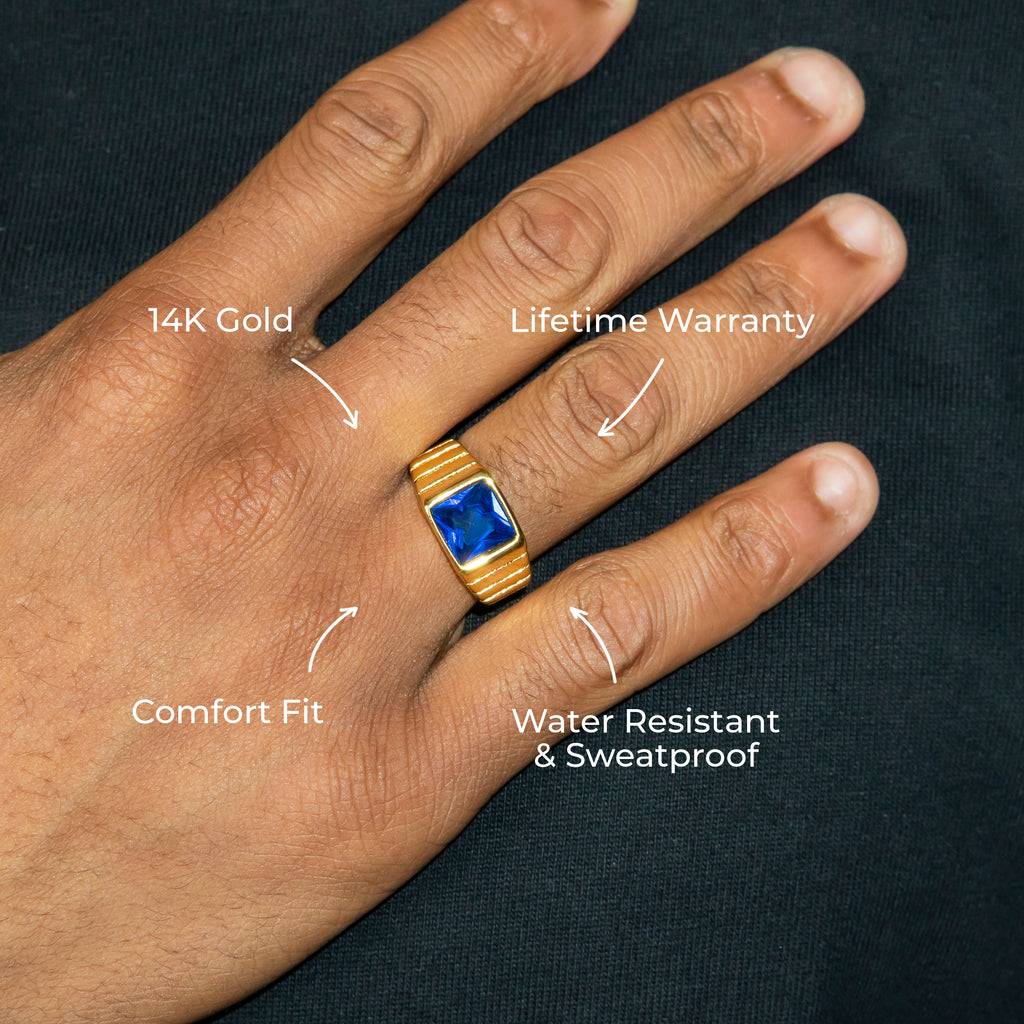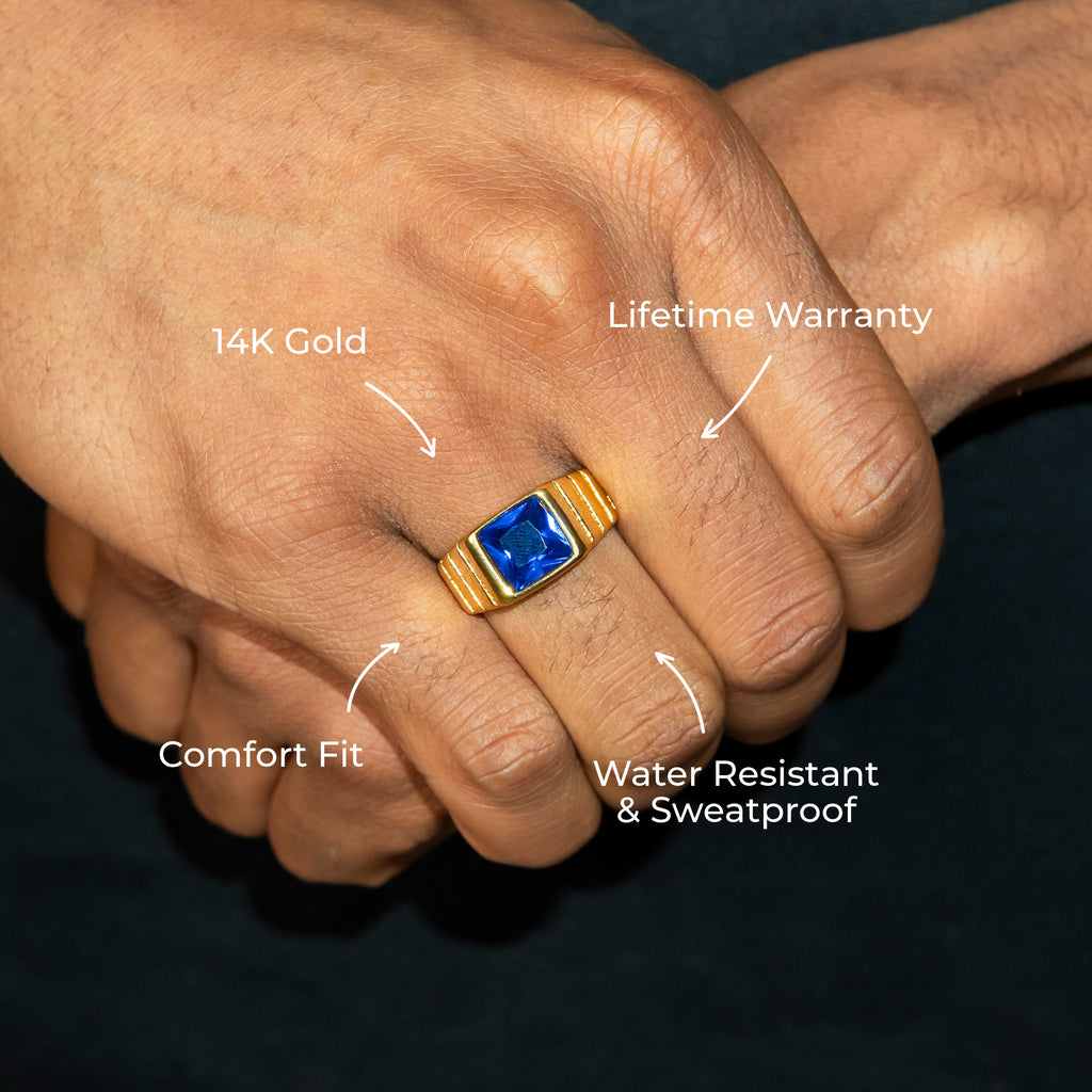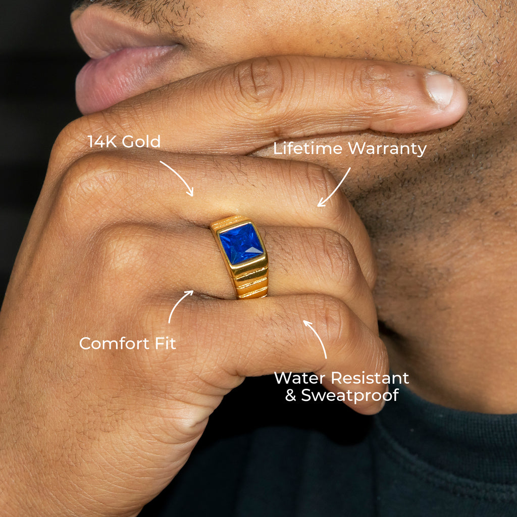 Mens Jewelry - Sapphire Gold Pinky Ring | 8 Grams