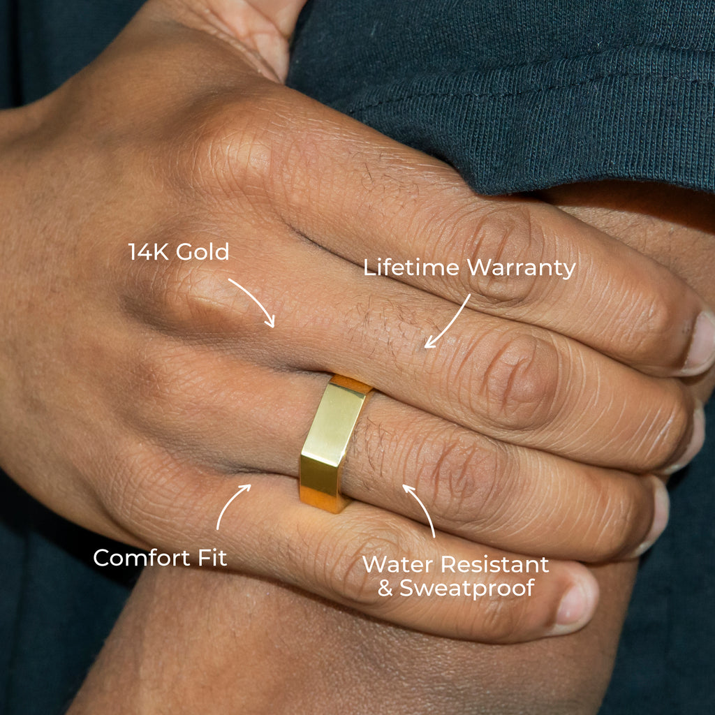 Mens Jewelry - Hexagon Gold Wedding Ring | 8 Grams
