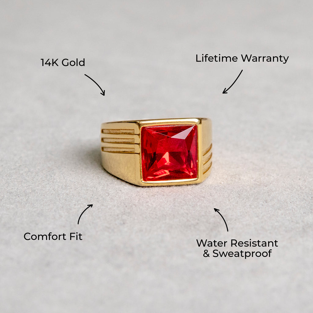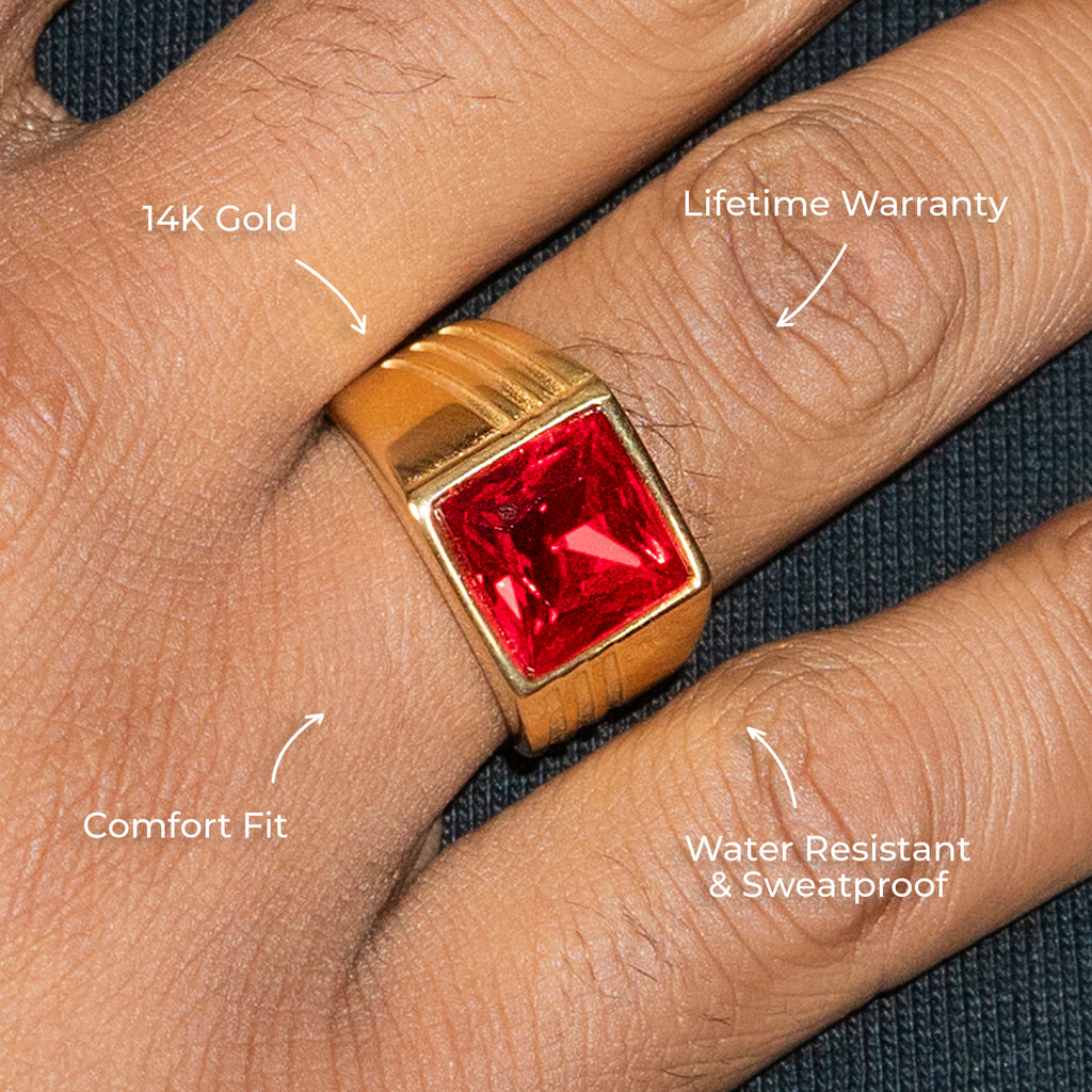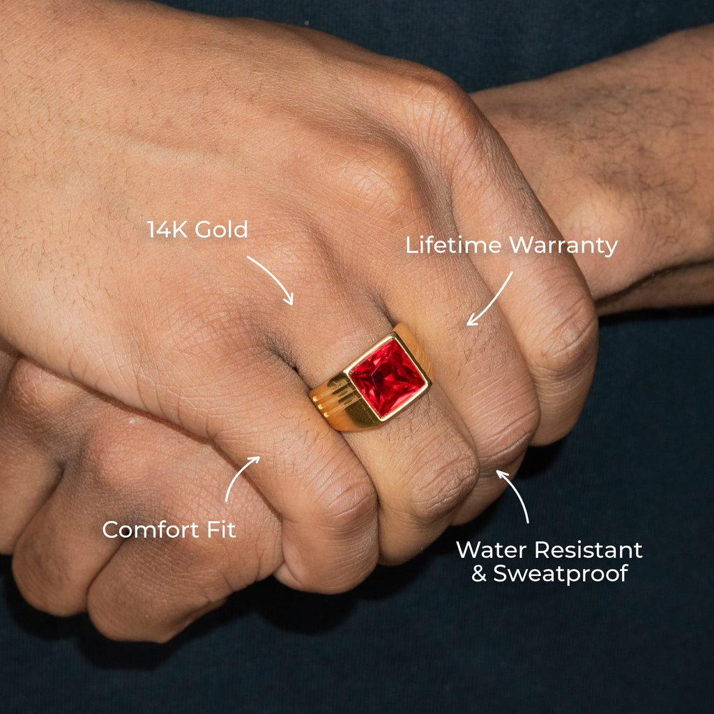 Mens Jewelry - Ruby Gold Pinky Ring | 11 Grams