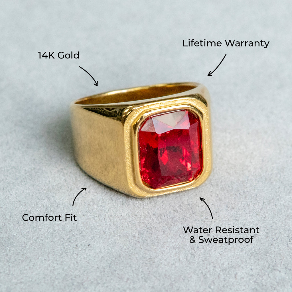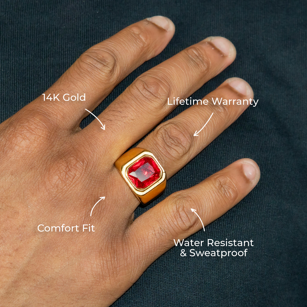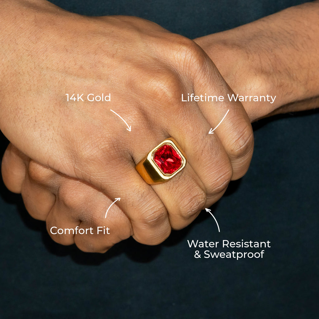 Mens Jewelry - Ruby Gold Pinky Ring | 15 Grams