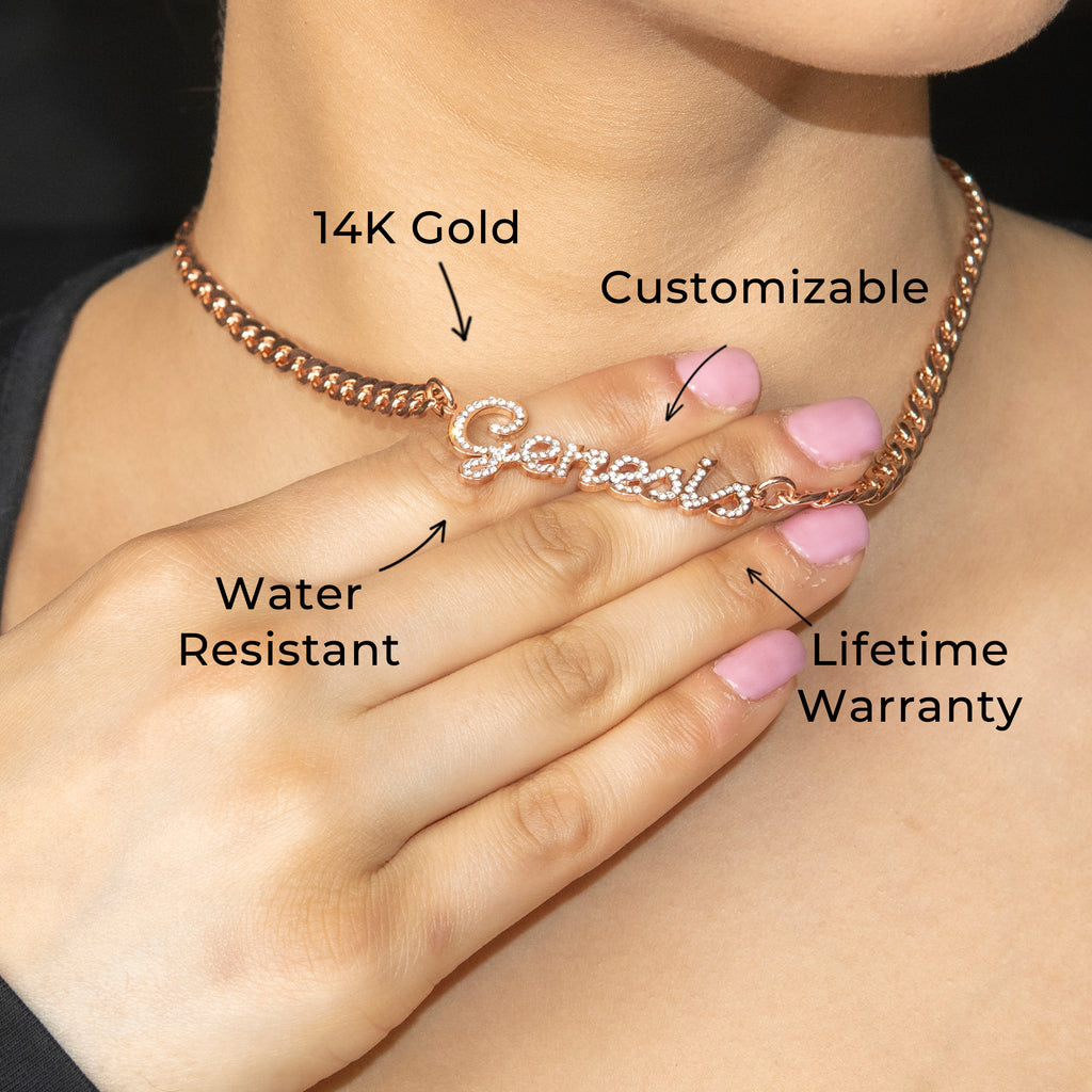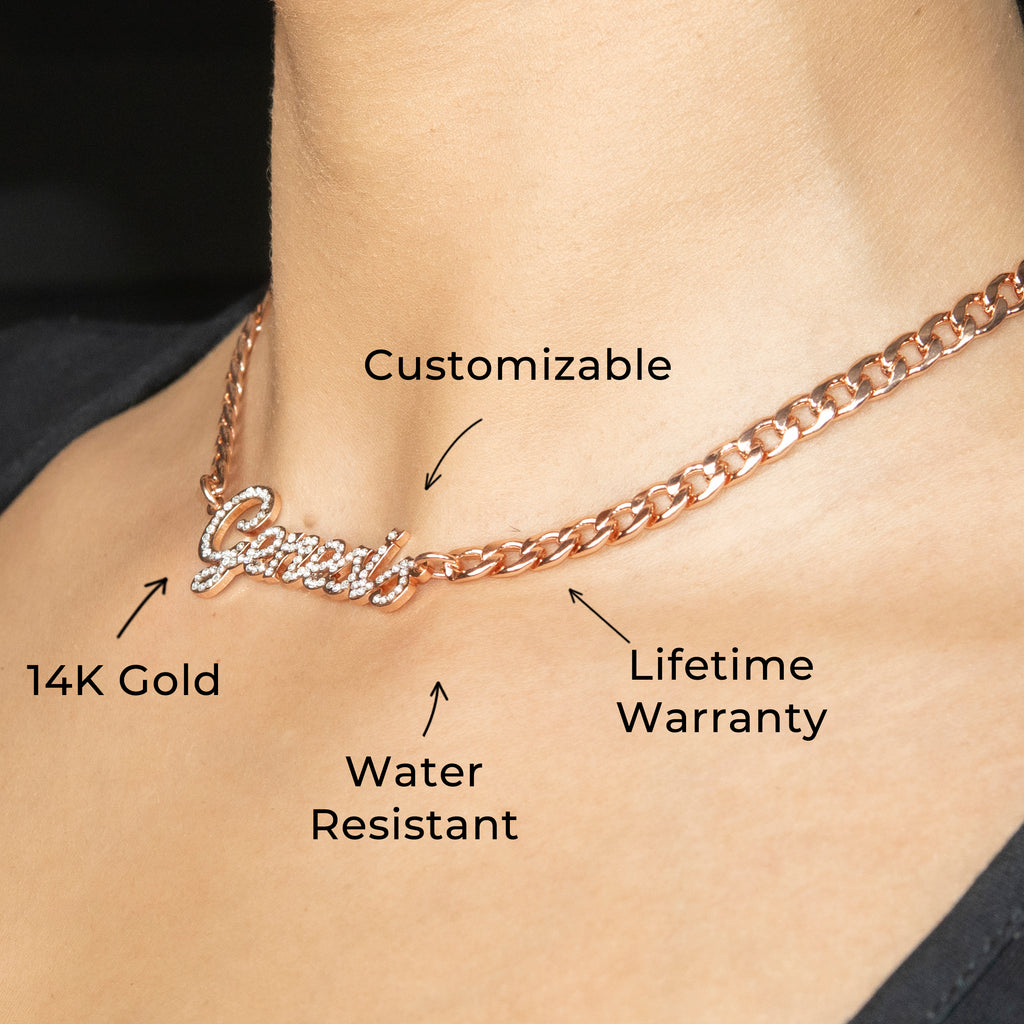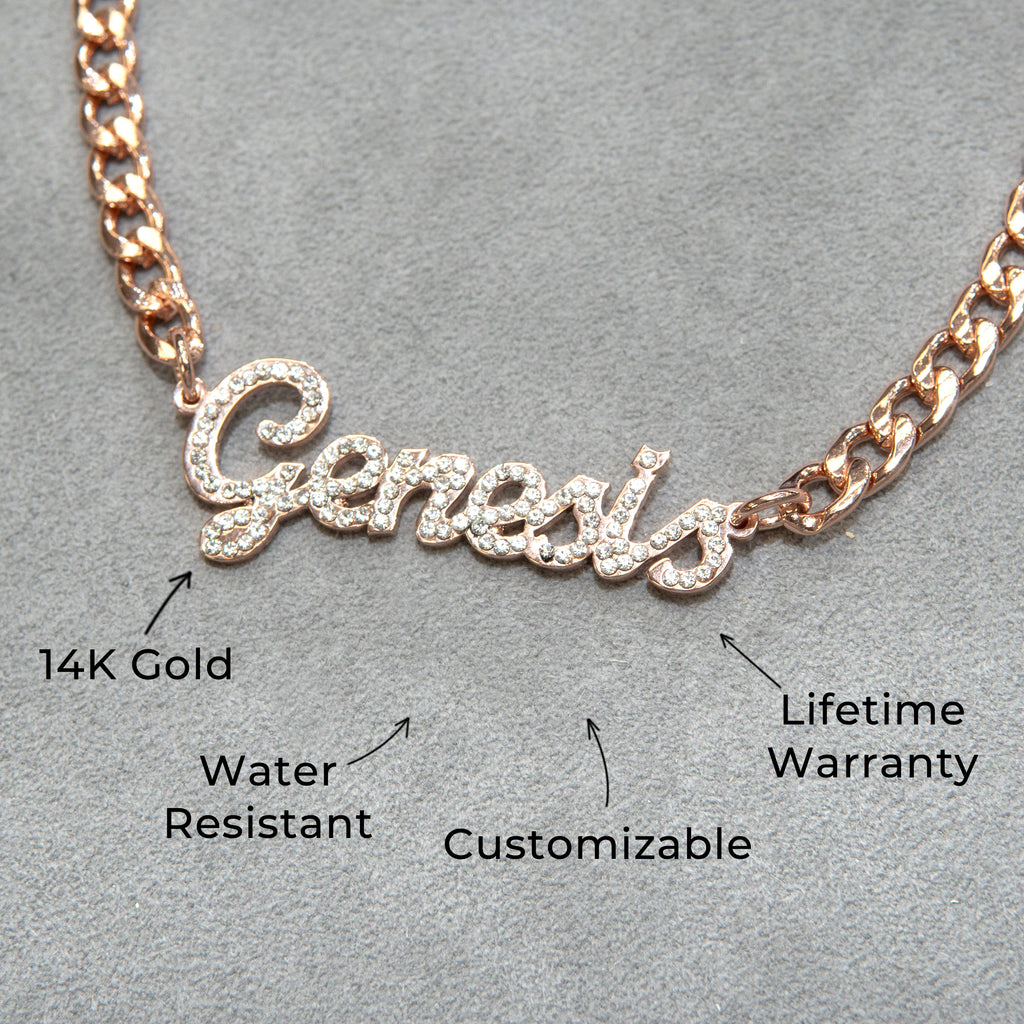 Women Jewelry - Rose Gold Iced Out VVS Name Necklace | Style # N24