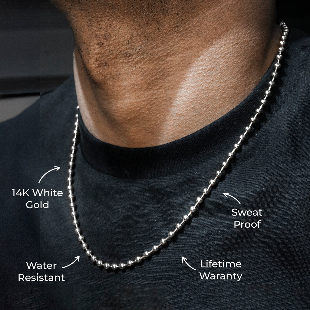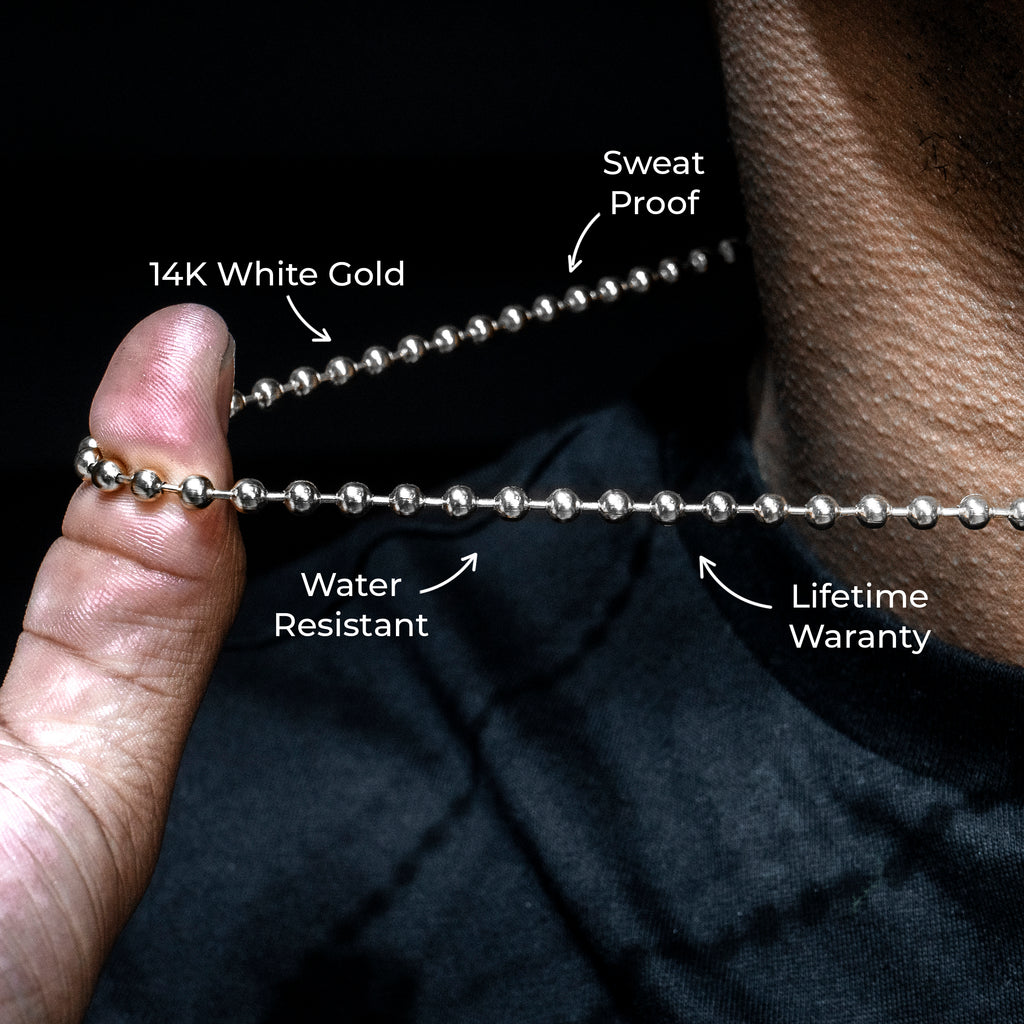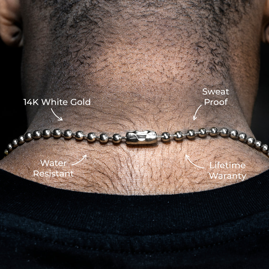 The GoldUrban 14K White Gold Plated Men’s White Gold Tag Chain is water-resistant, sweat-proof, and plated in real 14K white gold, combining contemporary style with durability for everyday wear — from workouts to nights out.