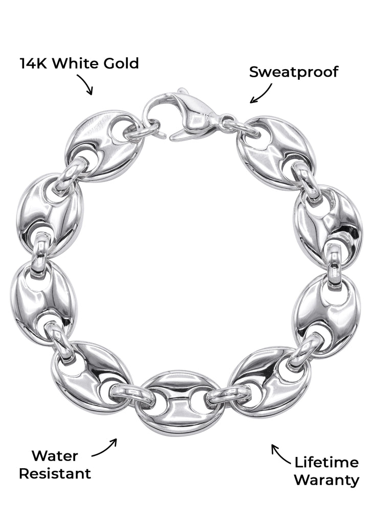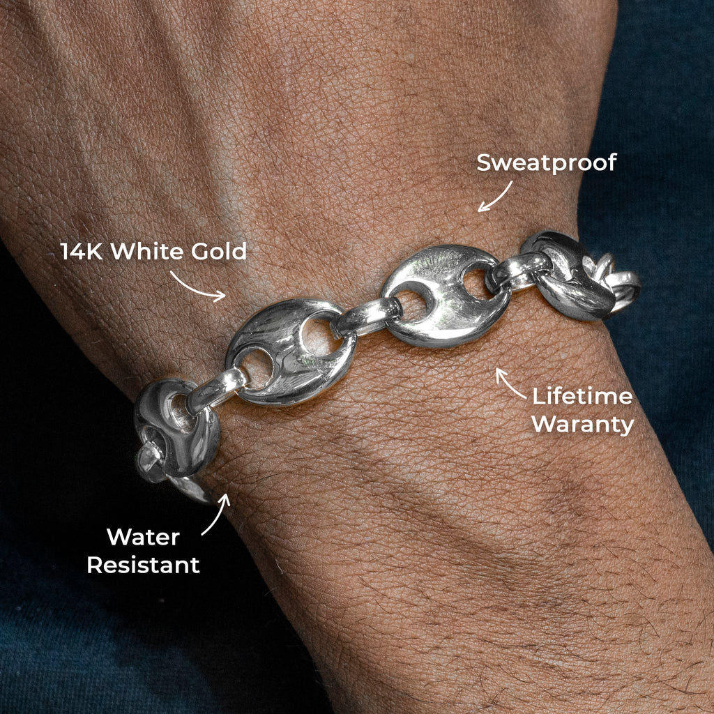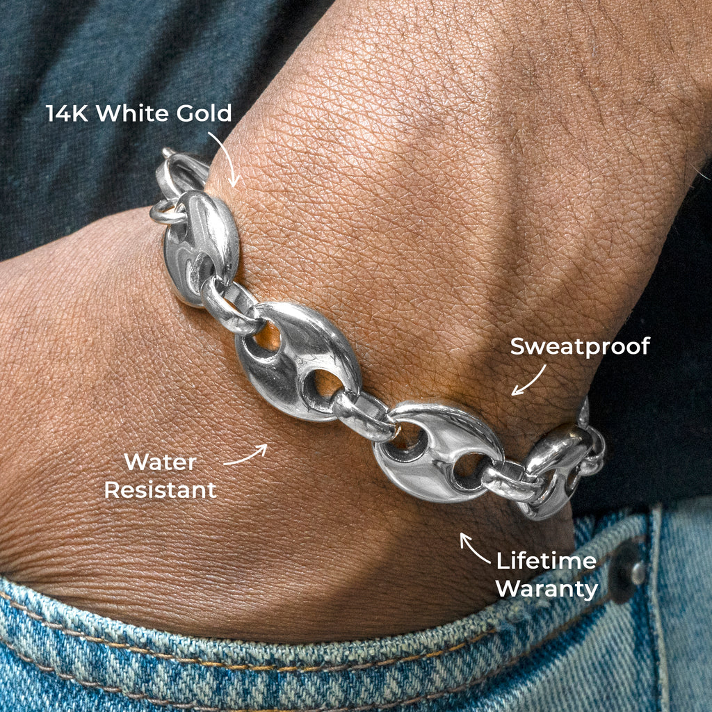 Gold Jewelry - Mens 14K White Gold Puff Bracelet