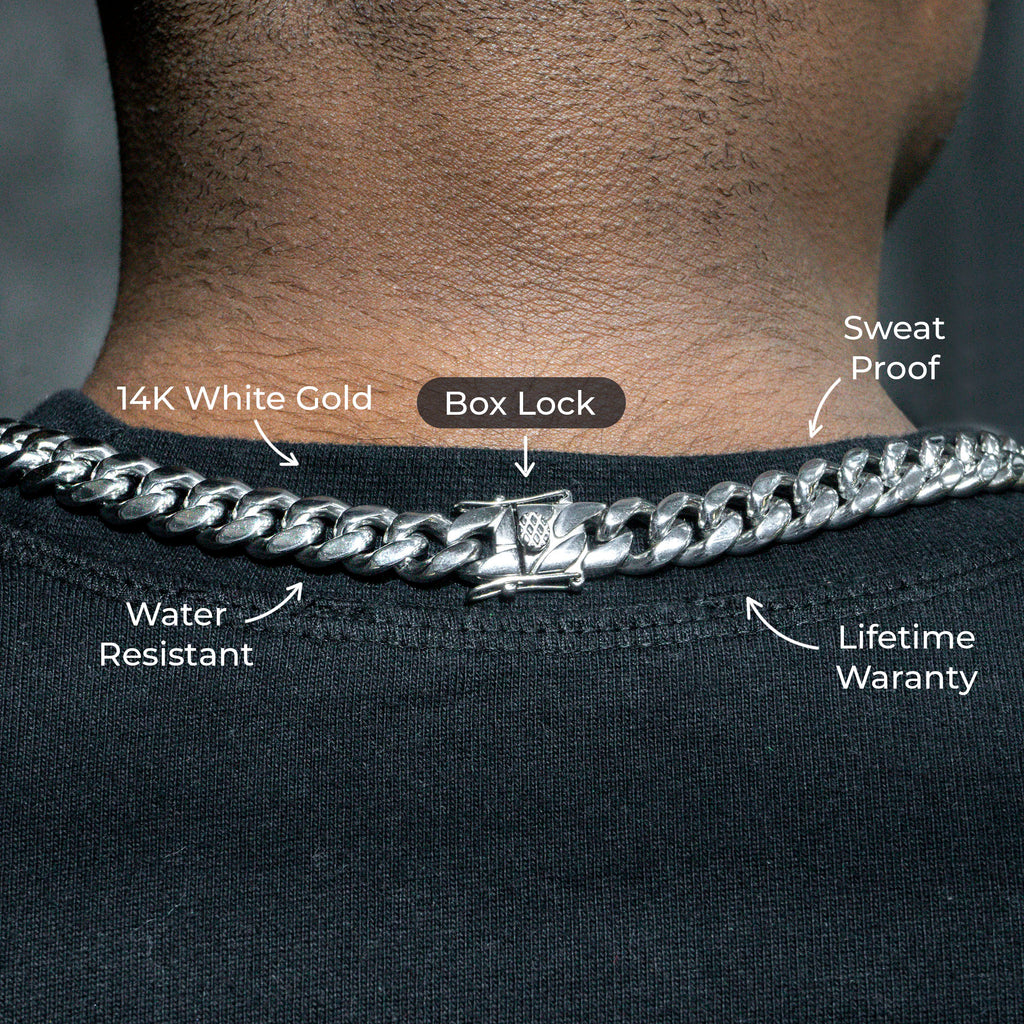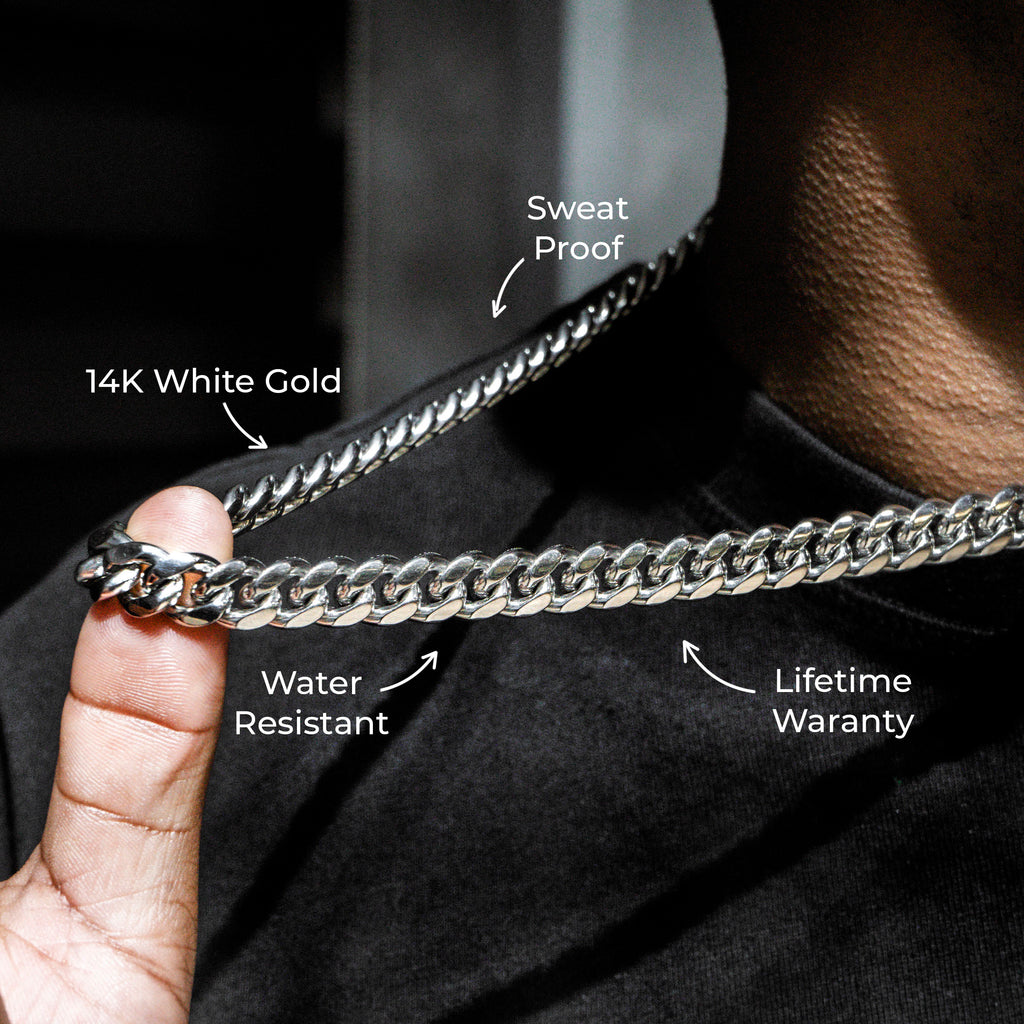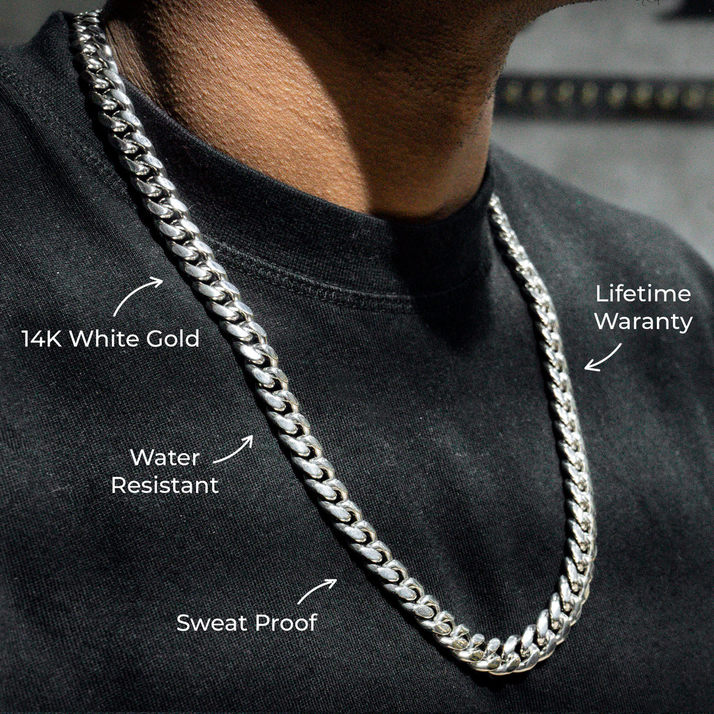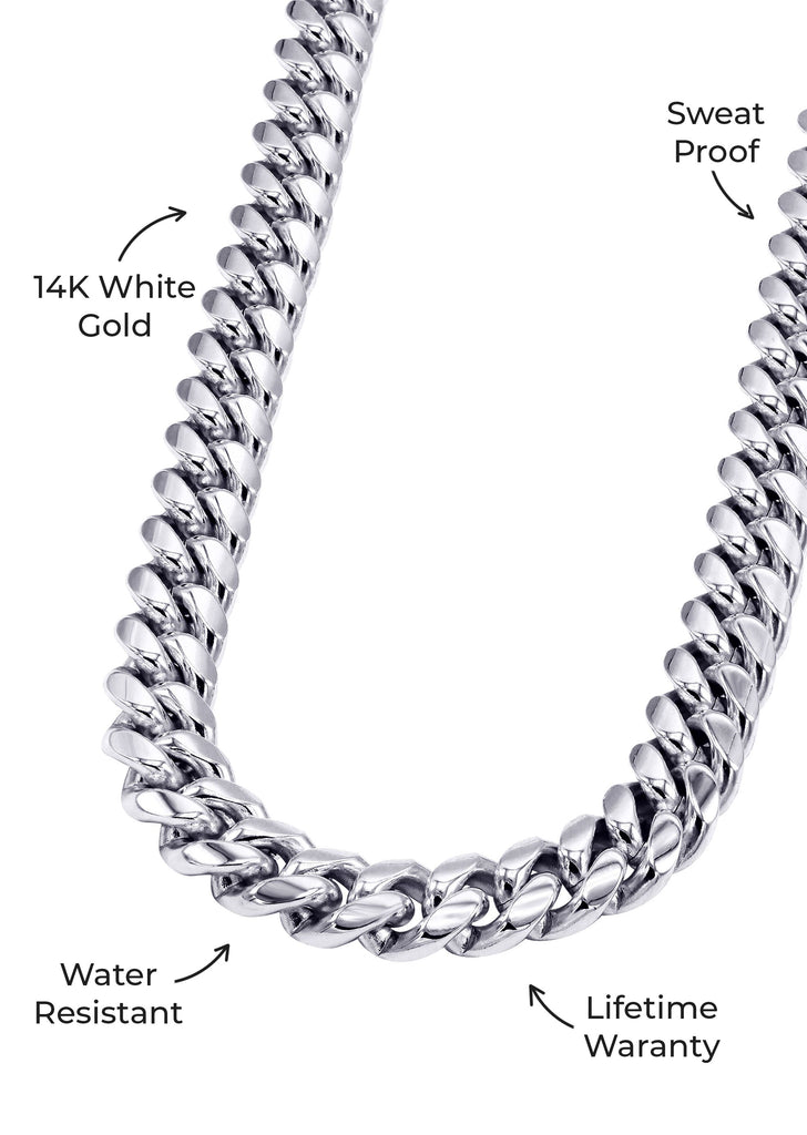 Gold Jewelry - Mens 14K White Gold Solid Miami Cuban Link Chain