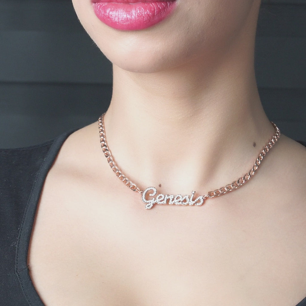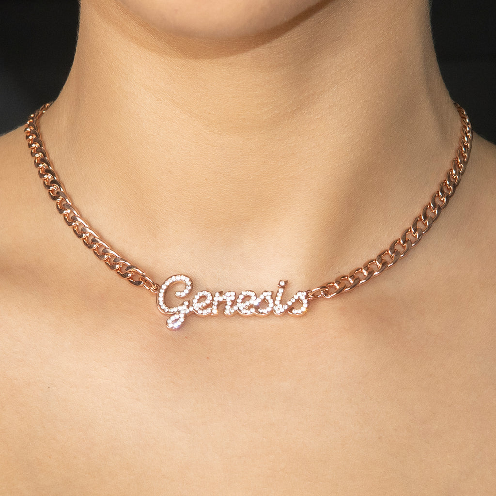 Women Jewelry - Rose Gold Iced Out VVS Name Necklace | Style # N24