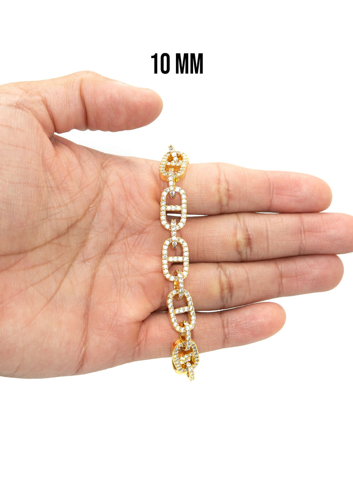 Gold Jewelry - Mens 14K Gold Iced Out VVS Tennis Mariner Bracelet