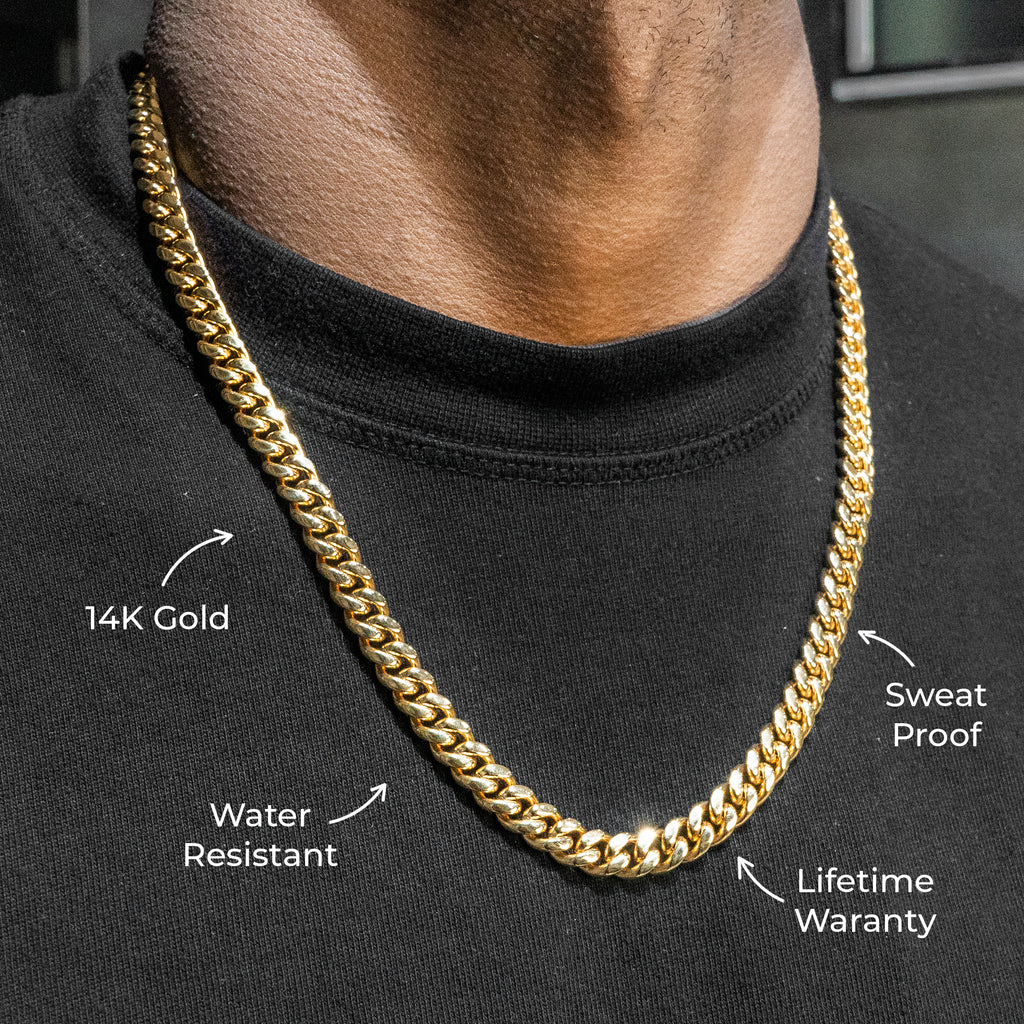 Mens Jewelry - Mens 14K Gold Chain Solid Miami Cuban Link / 6MM